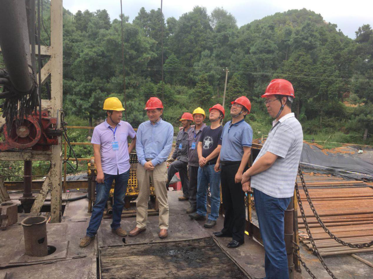 西北有色地矿集团董事长秦西社(右二)、总经理高菊生(右三)深入711总队贵州威宁热水井项目调研