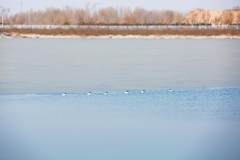 快看,这个冬天,榆林新材料集团的人工湖迎来了一群来自“远方的客人”,经过查验,他们是难觅踪迹的秋沙鸭。作为每年南北奔波的秋沙鸭群,他们中途临时在人工湖栖息。据了解,秋沙鸭共有5种,中国有3种,即中华秋沙鸭、红胸秋沙鸭和普通秋沙鸭,主要见于东部地区,北起黑龙江,南至海南省。根据榆林日报2018年12月6日的官方微博显示:入冬以来,有成千上万只大雁、白天鹅、灰鹤、秋沙鸭、红嘴鸥等候鸟从西伯利亚、内蒙古等地,飞到榆林境內的湖泊、草滩、河流等地栖息数日。