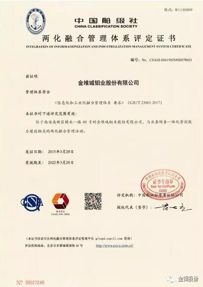 3月28日,金钼股份顺利通过国家两化融合管理体系贯标评定,取得国家工信部颁发的两化融合管理体系贯标评定证书。
