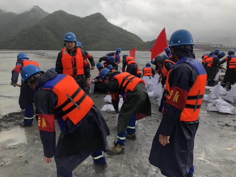 接到险情后,金钼汝阳防汛应急办立刻启动《金钼汝阳防汛应急抢险预案》Ⅰ级应急响应程序,同时请求汝阳县应急救援指挥部支援;同时组织各专业组奔赴现场进行抢险。汝阳县人民政府立即启动应急救援案,严格按照应急救援预案响应程序进行上报和应急处置,组织抢险突击队、公安干警、通讯、医疗等专业力量赴现场支援,同时为确保尾矿库下游群众生命安全,迅速组织群众安全撤离。在各方强有力的支持下,经过2个小时的紧张“战斗”,及时消除了险情,圆满完成本次防汛应急演练。