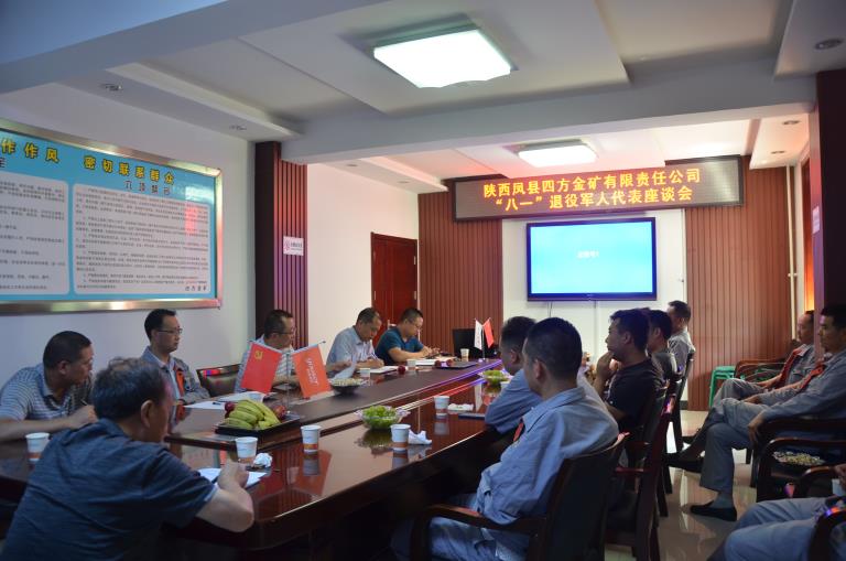 8月1日上午,黄金集团四方金矿召开“八一”退役军人代表座谈会。黄金集团党委副书记、四方金矿党委书记田金鹏、四方金矿副总经理张文革以及16名在矿退役军人代表参加了座谈。会议由四方金矿总会计师闫武科主持。