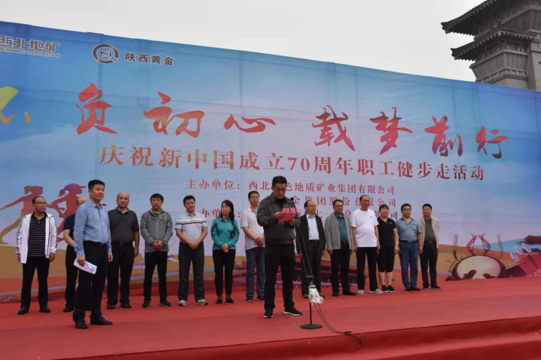 九月的汉中,秋雨绵绵,丹桂飘香。为庆祝即将到来的新中国70华诞,倡导健康生活、高效工作的理念,打造更加奋进、更具活力的职工队伍,9月11日,地矿集团、黄金集团在风景如画的汉中市天汉湿地公园,举办了以“不负初心 载梦前行”为主题的职工健步走活动,拉开了两集团庆祝新中国成立70周年系列活动的帷幕。两集团党委书记、董事长秦西社通过活动组委会向所有参加活动人员表示问候,并祝愿比赛取得圆满成功,两集团党委副书记、工会主席李忠民全程参与,两集团工会副主席杨永哲主持活动,来自两集团本部及各单位的14支代表队共计154名干部职工参加活动。
