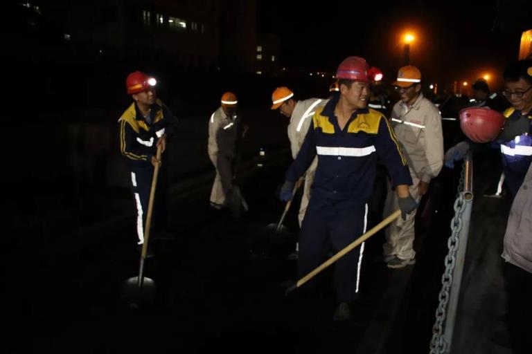 首列火车装车结束已是次日凌晨两点,铁路运销公司领导班子成员全程坐镇现场进行指挥,总经理王志雄亲切勉励所有在岗人员,首次作业安全第一、严格按照岗位操作流程作业、不要紧张、大胆发挥。在完成发运任务的同时,寻找短板,充分暴露问题和不足。此次试运行装车,是我们首次重载试验,对我们的设备设施、人员操作技能、各环节协作配合都是一次考验,这是一个检验的过程,同时也是自我提升的过程,一定要善于发现存在的不足,及时总结整改,为后期专用线连续稳定运行打好基础。