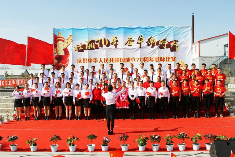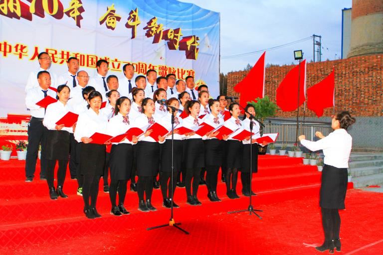红旗招展,歌声飞扬,森鑫儿女喜迎共和国华诞。为热烈庆祝中华人民共和国成立70周年,讴歌伟大祖国70年来取得的辉煌成就,森鑫矿业公司于9月27日下午举行了“壮丽70年、奋斗新时代”职工歌咏比赛。