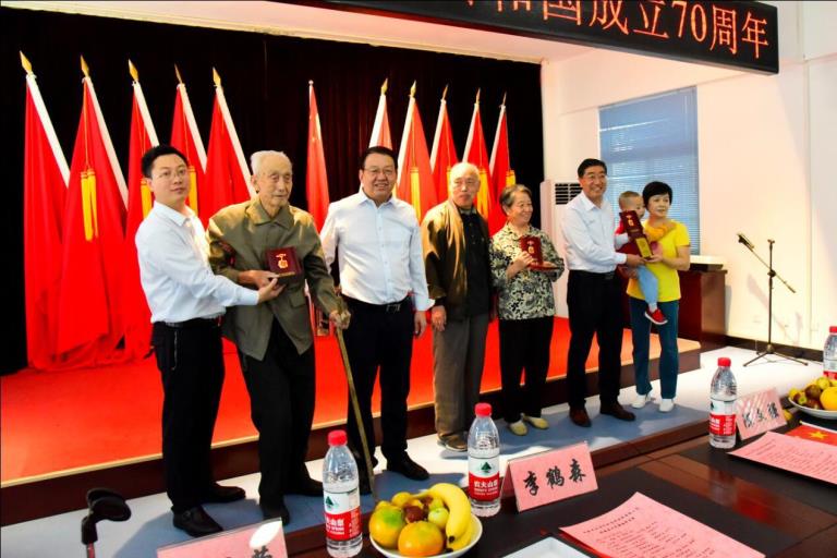 9月30日上午,研究院公司举行庆祝新中国成立70周年“歌颂祖国、放飞梦想”文艺汇演,公司离退休领导职工代表受邀出席,同庆新中国七十周年华诞。活动中研究所(研究院前身)所长秦平、研究院总经理冯玉怀、党委书记陈文强为离休老干部及家属代表代发由中共中央、国务院、中央军委颁发的“庆祝中华人民共和国成立70周年”纪念章,向为祖国无私奉献的老同志表达崇高敬意。