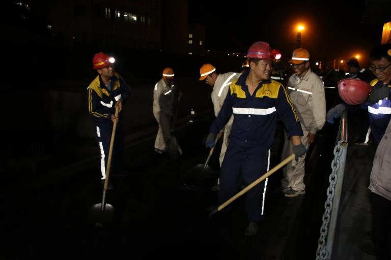 从首列火车装车结束至次日凌晨两点,铁路运销公司领导班子成员全程坐镇现场进行指挥,并亲切勉励所有在岗人员,首次作业安全第一、严格按照岗位操作流程作业、不要紧张、大胆发挥。在完成发运任务的同时,寻找短板,充分暴露问题和不足。此次试运行装车,是我们首次重载试验,对我们的设备设施、人员操作技能、各环节协作配合都是一次考验,这是一个检验的过程,同时也是自我提升的过程,一定要善于发现存在的不足,及时总结整改,为后期专用线连续稳定运行打好基础。
