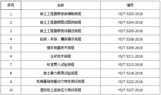 由中国有色金属工业西安勘察设计研究院有限公司主编,会同中国有色金属工业昆明勘察设计研究院有限公司、中国有色金属工业长沙勘察设计研究院有限公司等多家单位共同修订的《岩土工程勘察报告编制规程》等10项行业标准于近日正式出版发行。