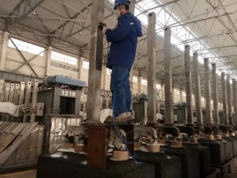 车间在切实做好疫情防控工作的同时安全生产毫不松懈,狠抓基础工作,围绕系列安全、节能降耗开展工作。车间管理人员、正副区长当班期间查看曲线,对异常曲线分析采取措施,对不具备出铝、换极、提母线条件的电解槽坚决不进行操作,确保电解槽稳定运行;每班巡视检查变形槽重点部位,确保及时发现异常,及时采取措施;完成正常槽三钢温度工作,防止意外事故发生;持续对重点槽进行管理,工区根据技术条件全面分析,罗列出需要规整炉膛的重点槽,在正副区长的带头下,换极的过程中使用钢钎、三齿耙等换极工具处理炉底沉淀,规整炉;降低卡具压降开展阳极导杆打磨作业。