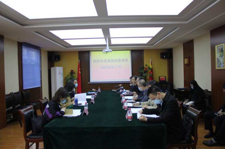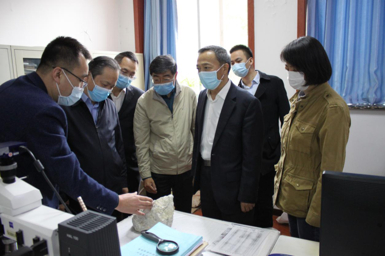 日前,省国资委二级巡视员法自领、创新合作处副处长郑玲一行对地矿集团科研平台建设和科技创新工作进行调研指导。陕西有色集团副总经理、总地质师朱华平,地矿集团副总经理张旭宇等陪同调研。