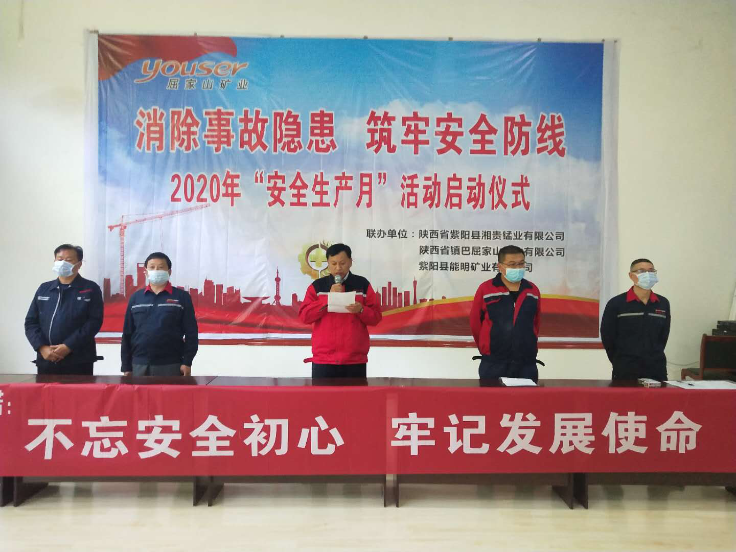 随着疫情发展的有效遏制,各企业复工复产加快,安全隐患逐渐升高,安全形势依旧严峻。为进一步增强安全生产意识,提升企业安全管理素质,紧紧围绕国家“消除事故隐患、筑牢安全防线”主题,6月1日,冶矿集团权属企业湘贵锰业、屈家山矿业和能明矿业联合举办了2020年“安全生产月”活动启动仪式。