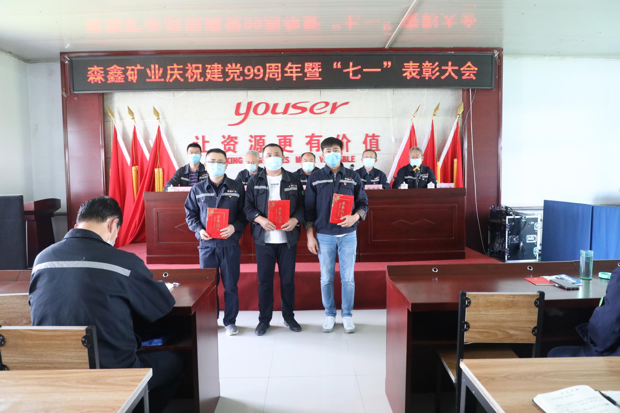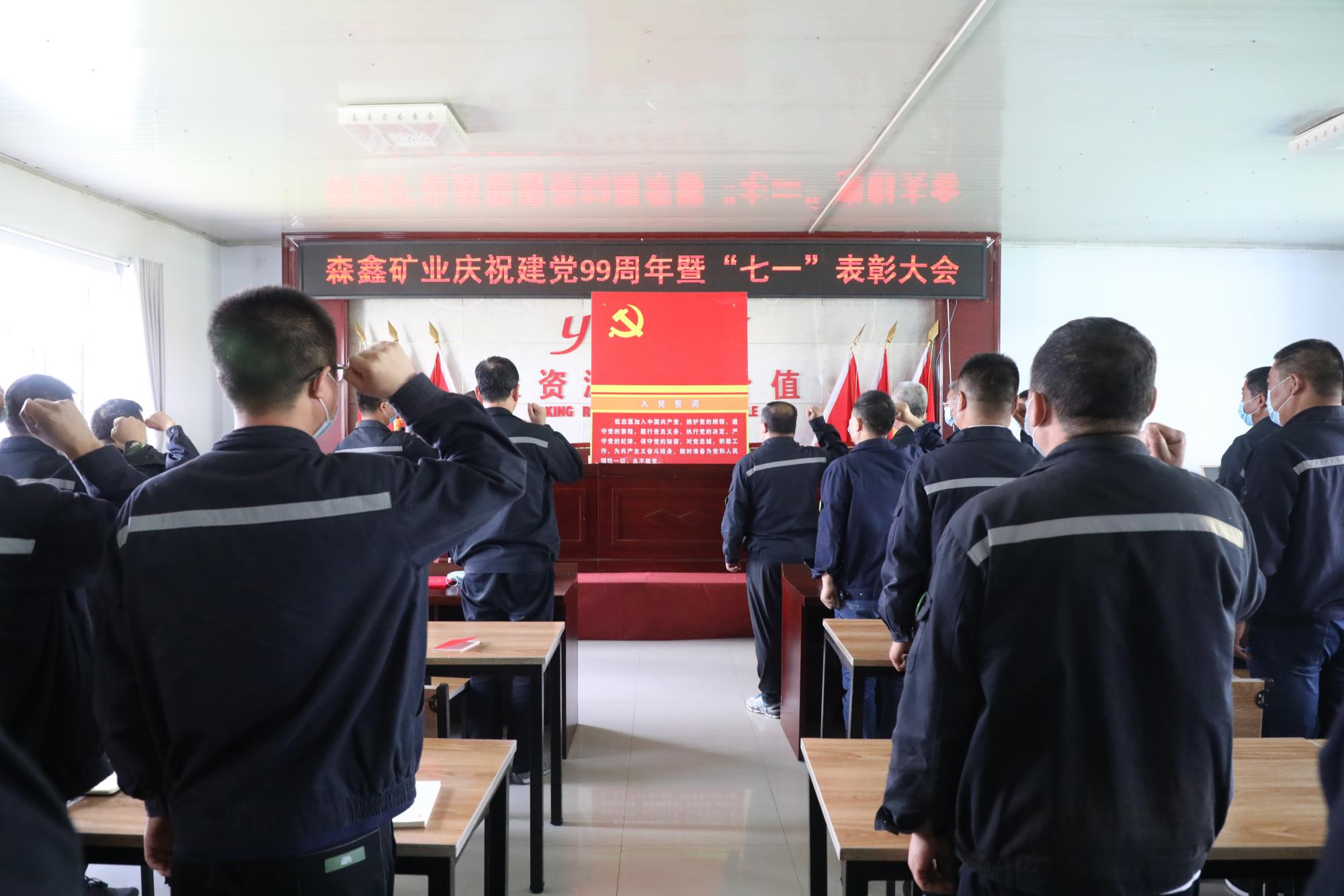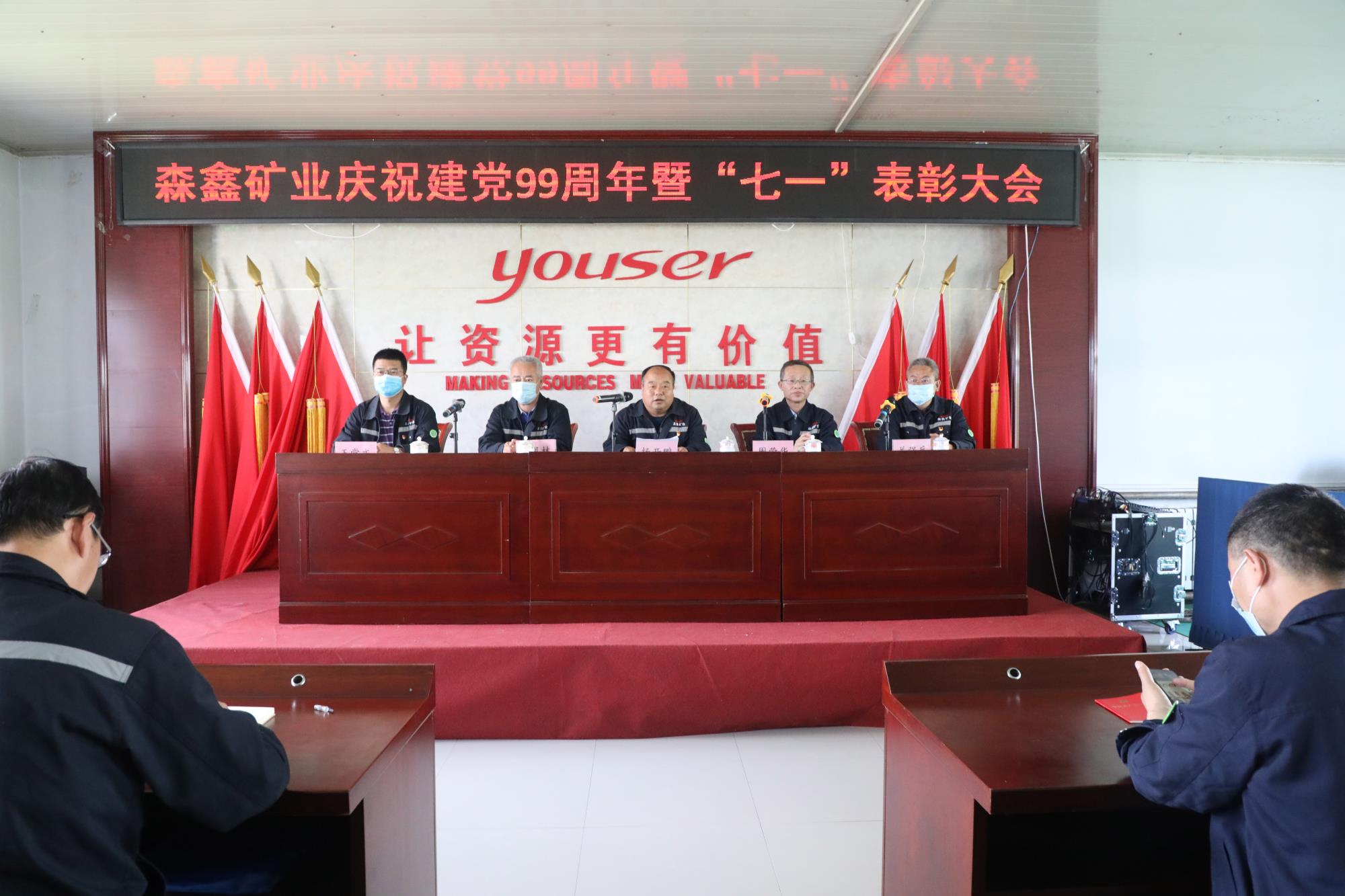 为重温党的光辉历程,传承党的优良传统,森鑫矿业于7月1日下午召开庆祝建党99周年暨“七一”表彰大会,会议由党委副书记周荣华主持,公司党委委员、全体党员及助理级以上管理人员共40余人参加会议。