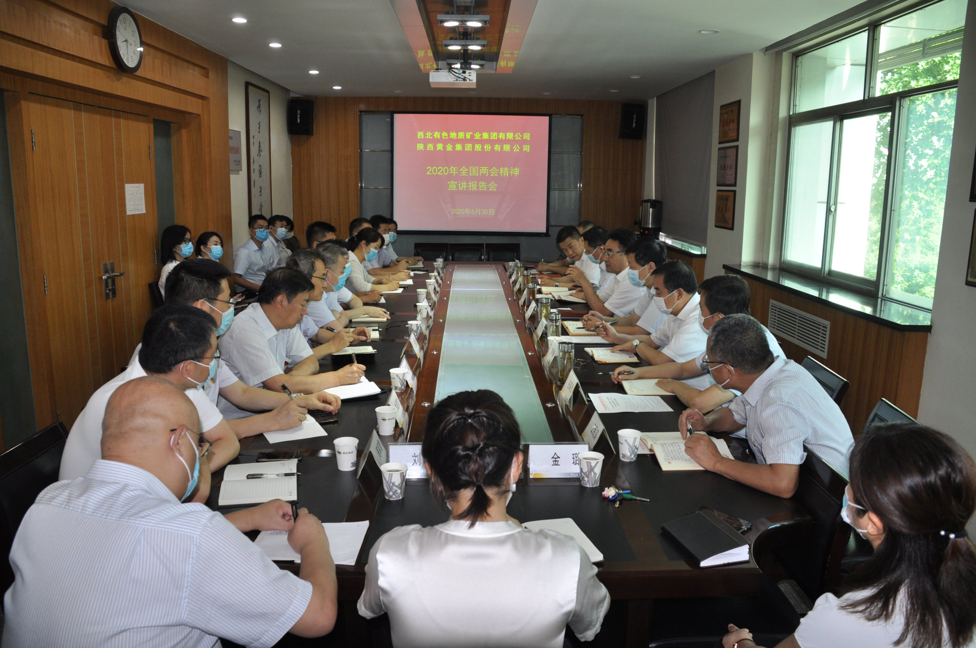 为深入学习宣传贯彻全国两会精神,进一步统一思想、凝聚共识、激发干劲,根据陕西有色金属集团党委宣讲工作统一安排,6月30日,地矿集团、黄金集团党委组织召开了全国两会精神宣讲会。两集团党委书记、董事长秦西社作动员讲话。两集团党委副书记、工会主席李忠民主持会议并作专题宣讲报告。