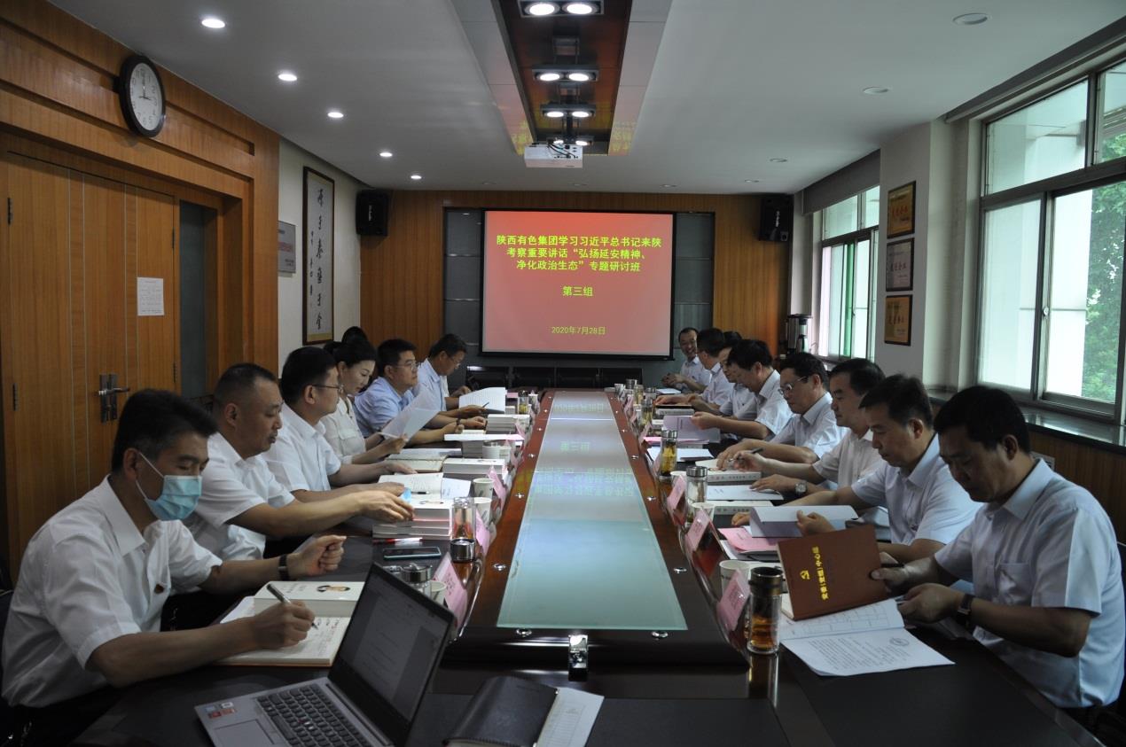陕西有色金属集团学习习近平总书记来陕考察重要讲话“弘扬延安精神,净化政治生态”专题研讨班第三组在两集团进行集中学习