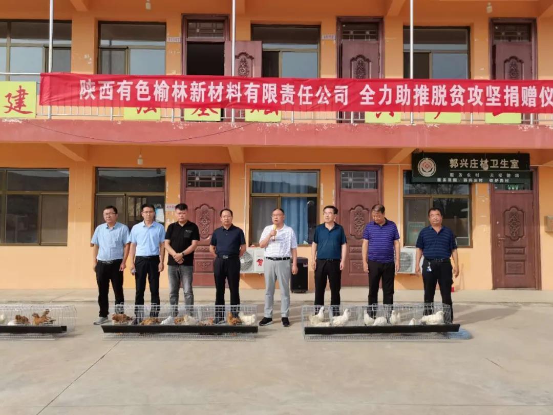 7月13日下午,榆林新材料党委副书记、工会主席孙书平一行前往榆阳区上盐湾镇郭兴庄村开展“爱心捐赠鸡苗、助力脱贫攻坚”行动,向郭兴庄村50个贫困户家庭捐赠了1300只鸡苗。