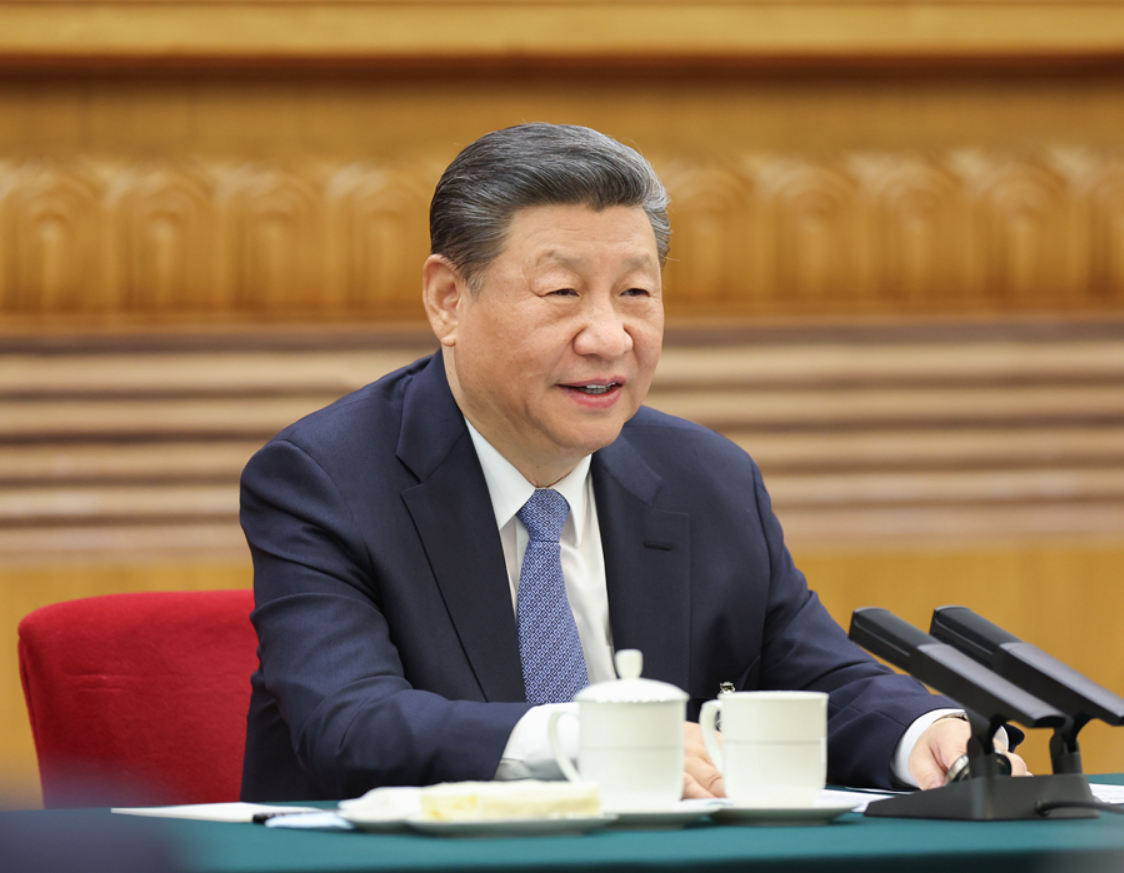 3月5日,中共中央总书记、国家主席、中央军委主席习近平参加他所在的十四届全国人大二次会议江苏代表团审议。新华社记者 谢环驰 摄