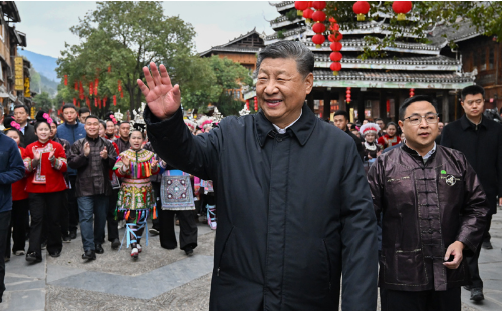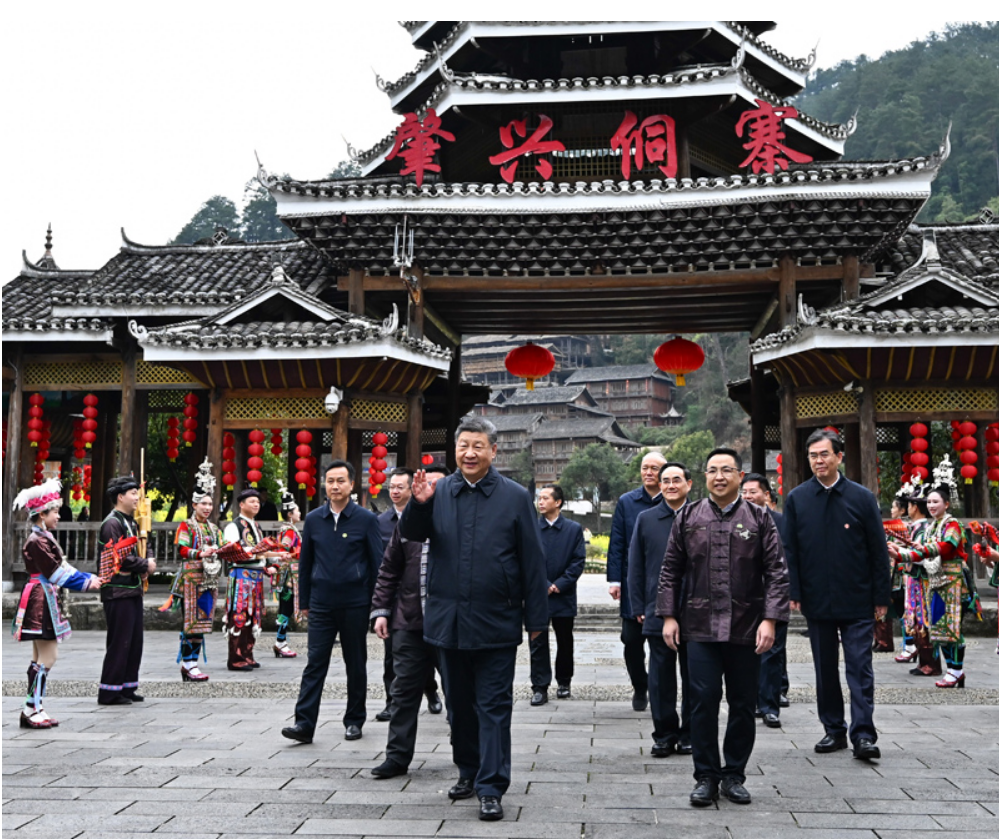 从鼓楼起身,村民们纷纷簇拥过来,热烈鼓掌,高声向总书记问好。习近平高兴地回应说,侗族人民朴实、勤劳、有文化、有智慧,希望大家在中国式现代化进程中把乡村振兴搞得更好,祝愿大家的日子越过越红火。离开侗寨时,侗族群众深情地唱起《侗歌声声唱给党》,表达对总书记的热爱和依依不舍。习近平频频挥手,同乡亲们道别。
