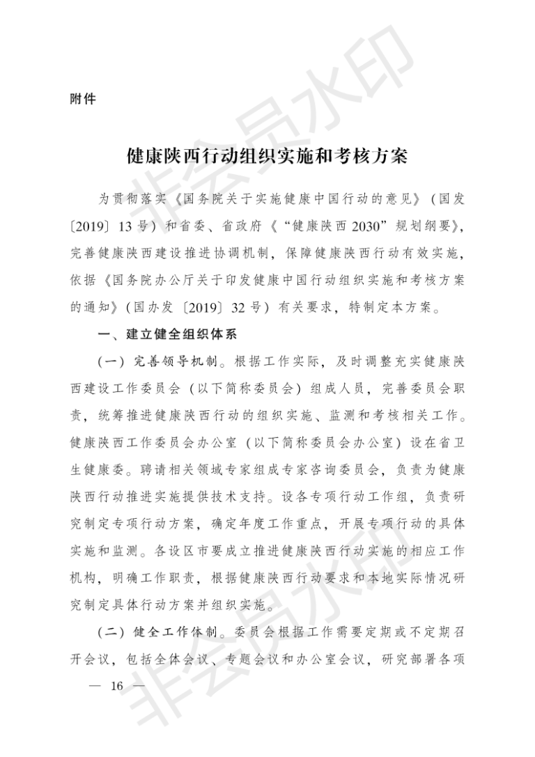 为深入实施健康中国战略,推进健康陕西行动,根据《国务院关于实施健康中国行动的意见》(国发〔2019〕13号)和《中共陕西省委陕西省人民政府关于印发〈“健康陕西2030”规划纲要〉的通知》(陕发〔2017〕16号)精神,现提出以下实施意见。