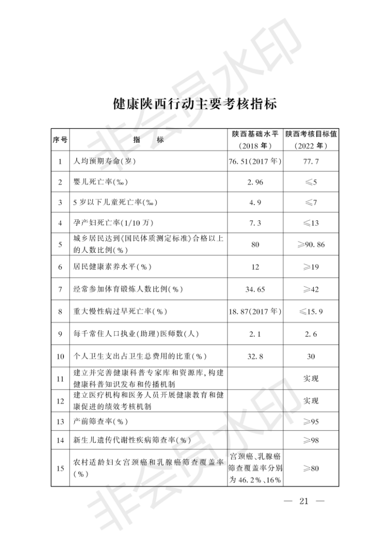 陕西省人民政府关于推进健康陕西行动的实施意见