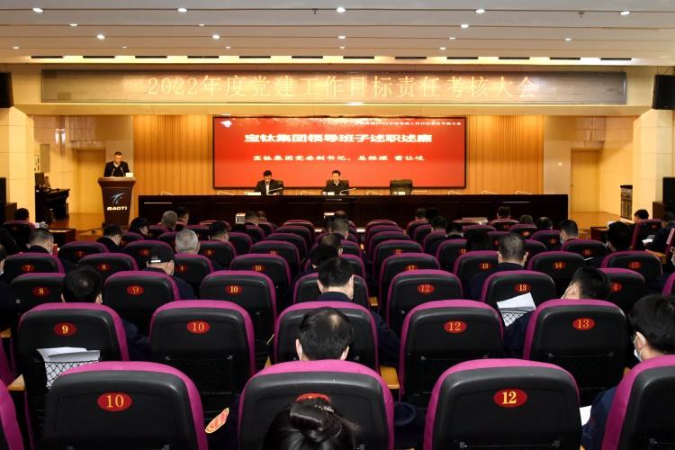 3月14日,陕西有色金属集团党委副书记、考核组组长郭仕龙一行,在宝钛宾馆七楼学术报告厅召开了宝钛集团2022年度党建工作目标责任考核大会。陕西有色金属集团党委组织部副部长宋丰杰主持会议。公司领导班子成员、中层干部代表、职工代表参加会议。
