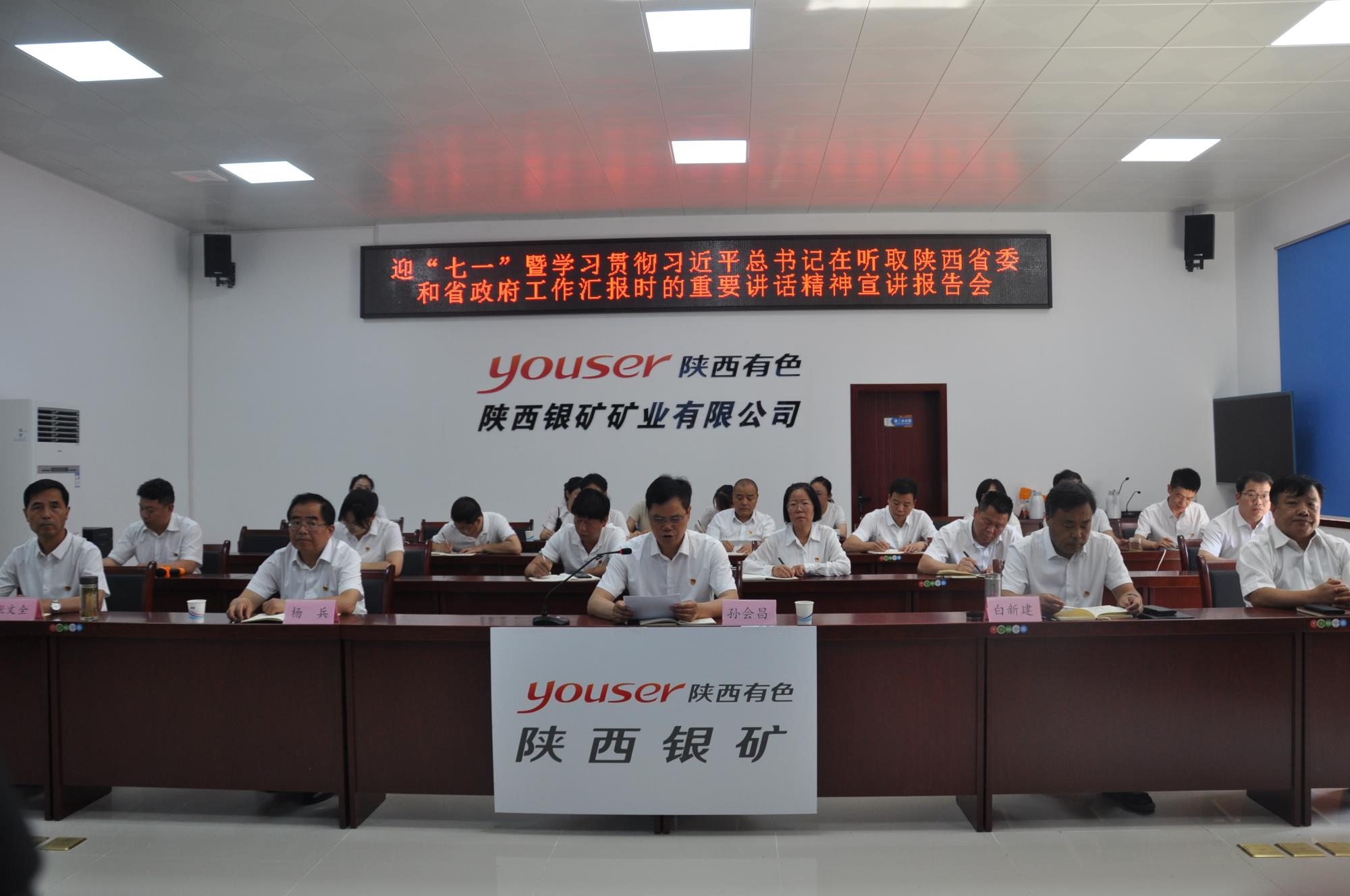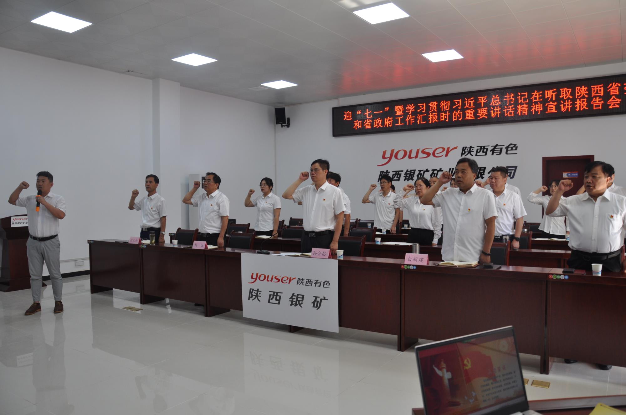 6月30日,陕西银矿党委举行迎“七一”暨学习贯彻习近平总书记在听取陕西省委和省政府工作汇报时的重要讲话精神宣讲报告会。报告会邀请陕西省委理论讲师团成员方欣教授作专题宣讲。会议以“现场+视频”形式召开,报告会前,全体党员合唱《义勇军进行曲》,面对党旗,预备党员入党宣誓,与会党员重温入党誓词。