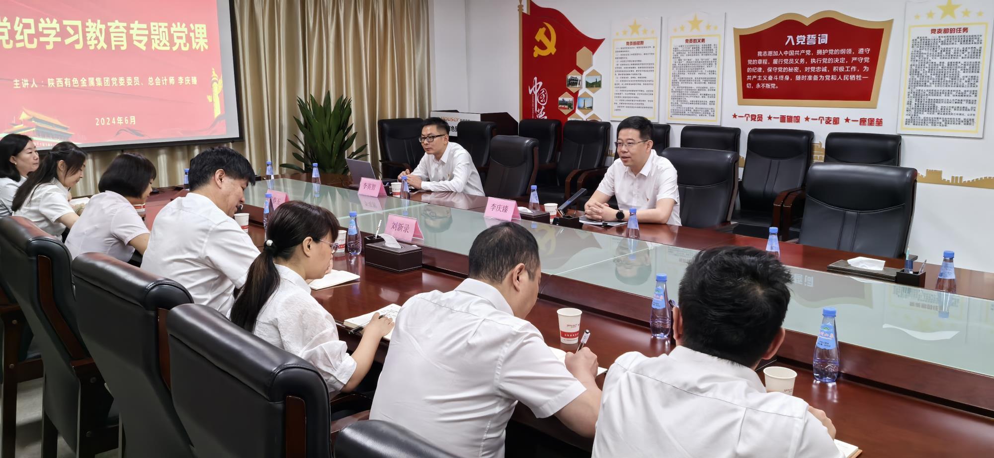 在全党上下喜迎“七一”之际,在集团公司全力冲刺半年目标任务之时,为深入贯彻落实习近平总书记关于党纪学习教育重要讲话重要指示精神,推动党纪学习教育走深走实,引导广大党员干部学纪、知纪、明纪、守纪,6月25日,陕西有色金属集团党委委员、总会计师李庆臻到贸易公司讲授党纪学习教育专题党课,公司领导班子成员、中层干部及党群部门人员参加会议。