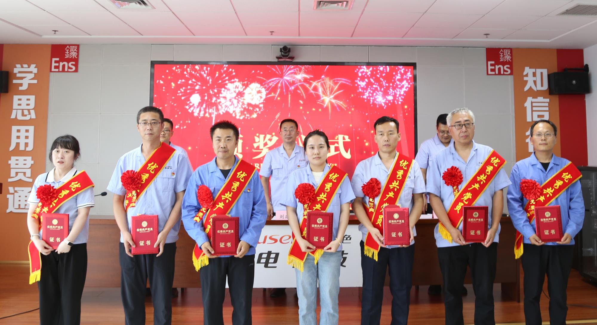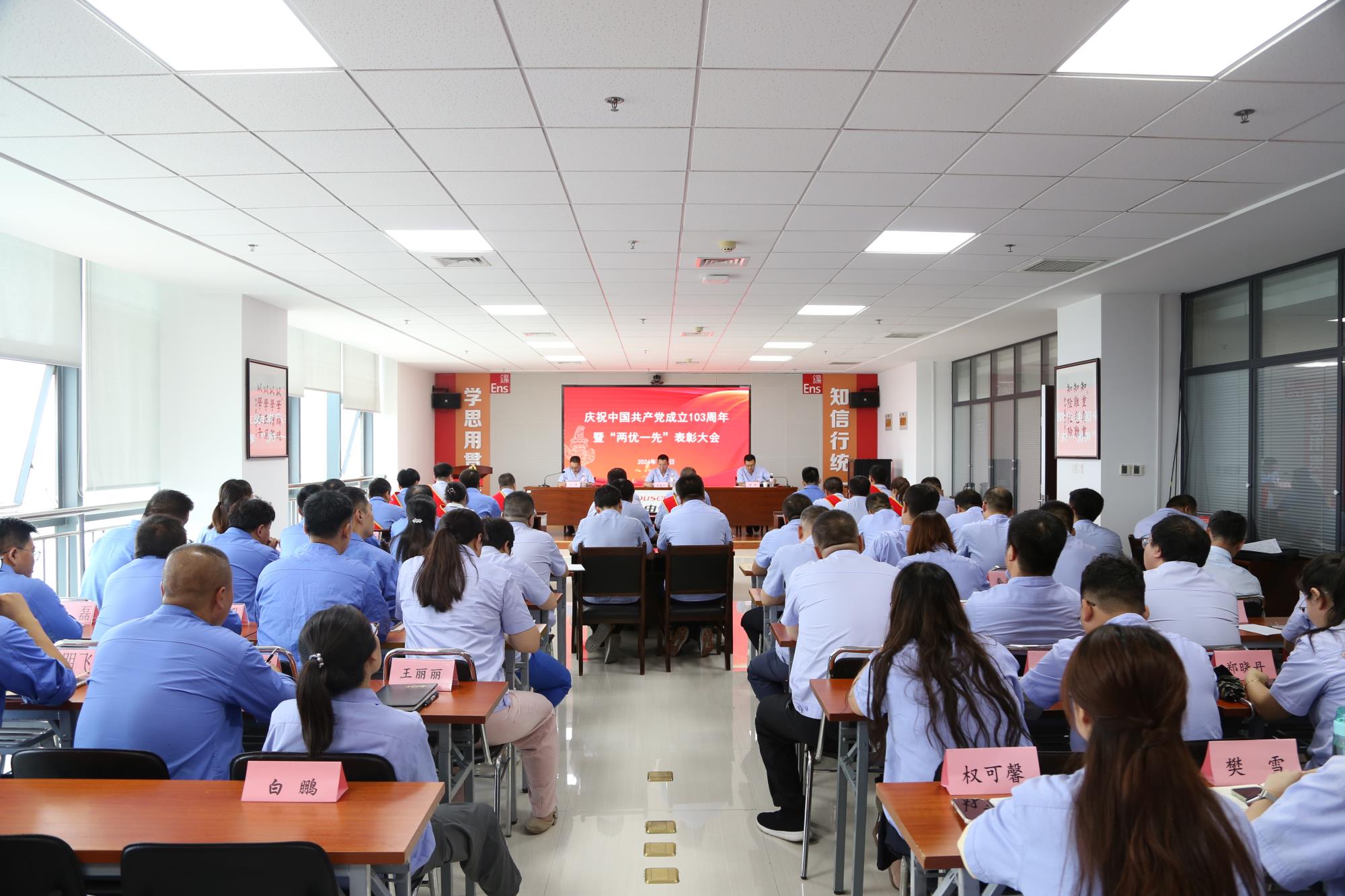 为庆祝中国共产党103周年华诞,表彰先进,鼓舞干劲,7月1日,光电科技、华山半导体隆重召开庆祝中国共产党成立103周年暨“两优一先”表彰大会。两公司党委书记、董事长刘建中出席会议并讲话。会议由公司党委委员、副总经理贾哲主持。公司领导班子成员、中层管理干部、党员代表、新发展党员等同志参加会议。