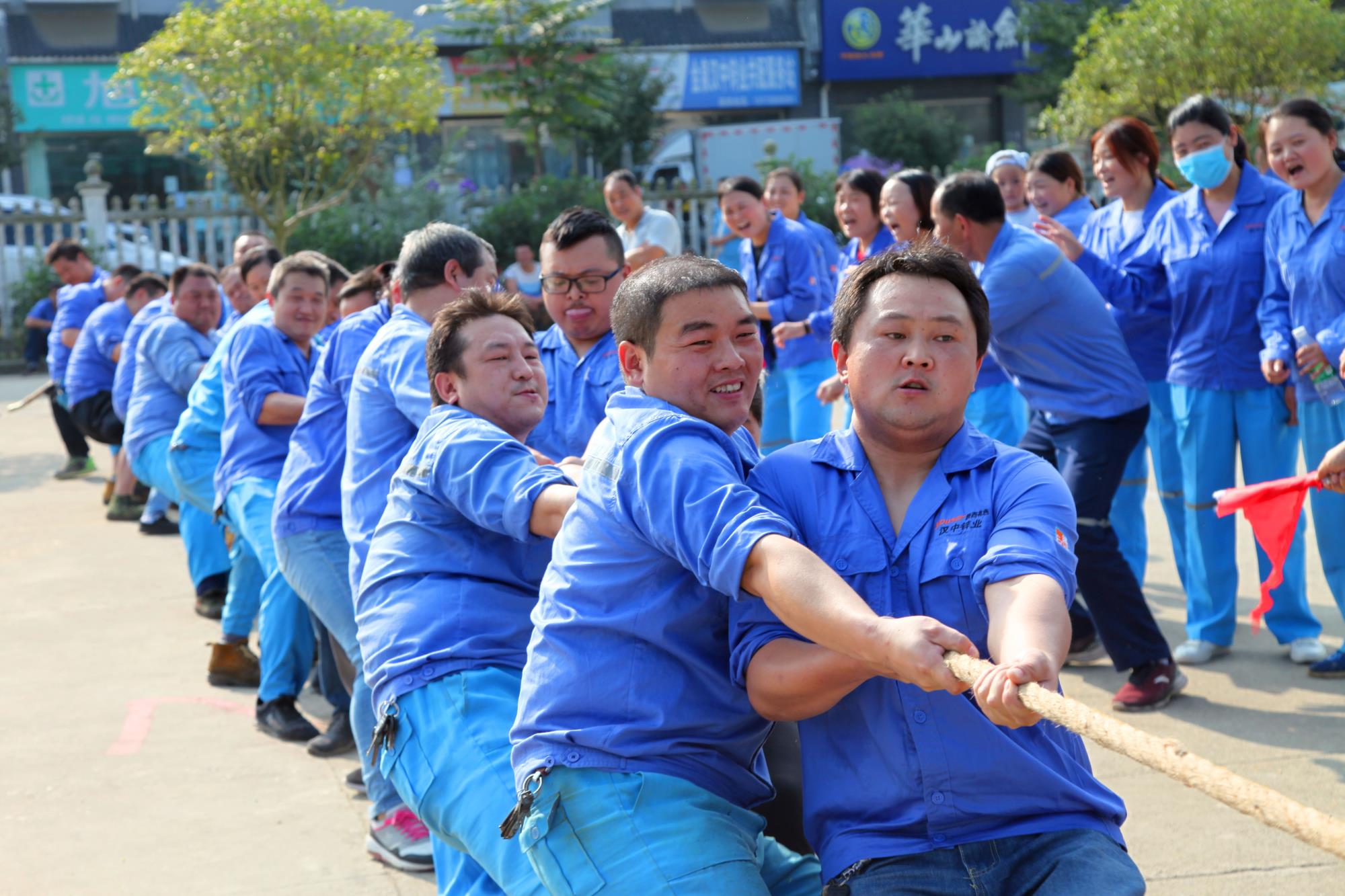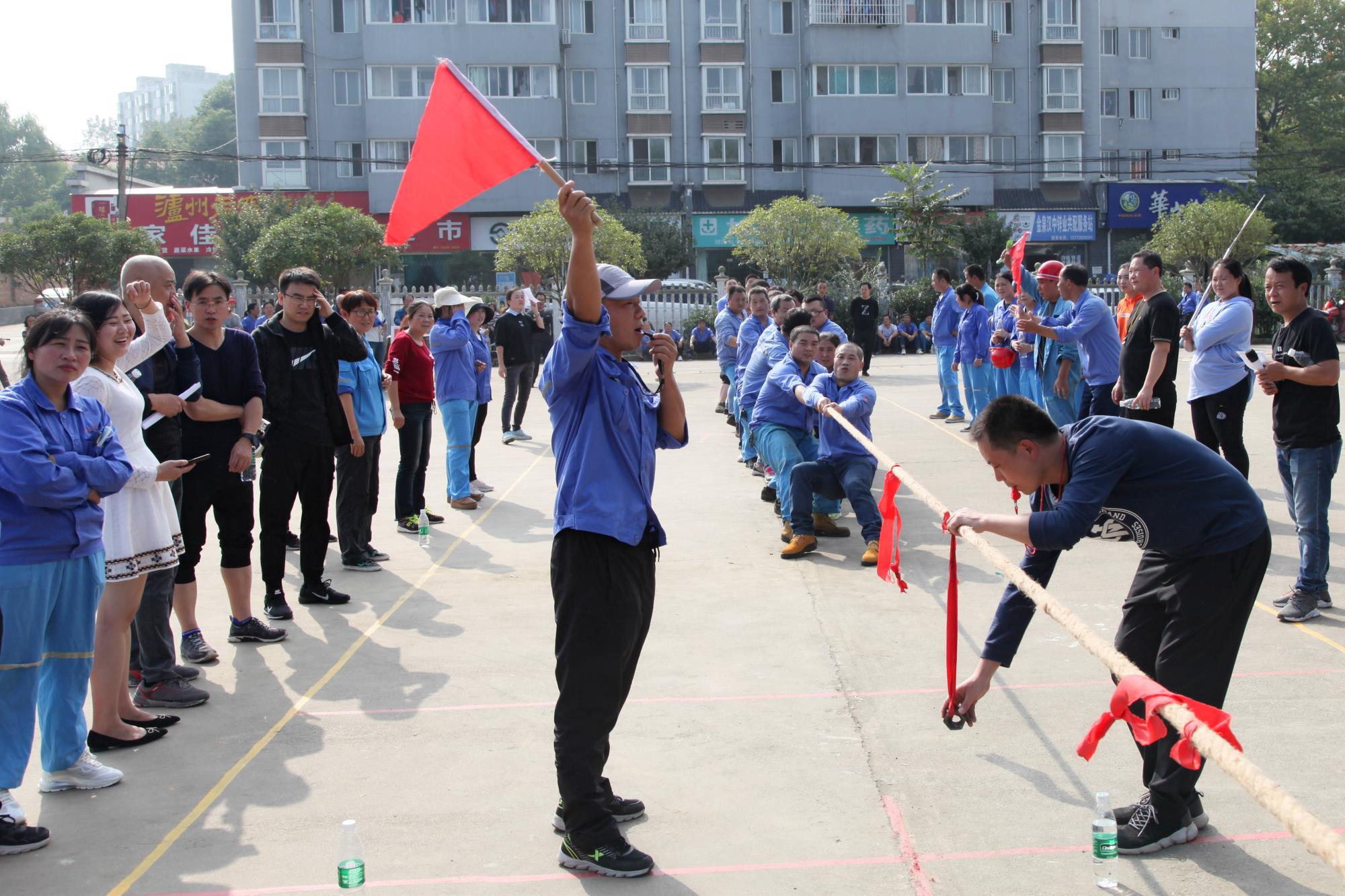 金风送爽,丹桂飘香。下午14时30分,公司总部职工文化活动中心人声鼎沸,热闹非凡。拔河比赛在紧张、激烈的气氛中开始,在宣布完比赛规则,随着裁判一声哨响,比赛现场立刻沸腾起来。加油声此起彼伏,一浪高过一浪!在拉拉队的“加油”助威声中,每支参赛队都卯足了劲,队员们都涨红了脸,大家都抓紧了绳,全力以赴,激烈的比赛将整个活动推向了一个又一个高潮!