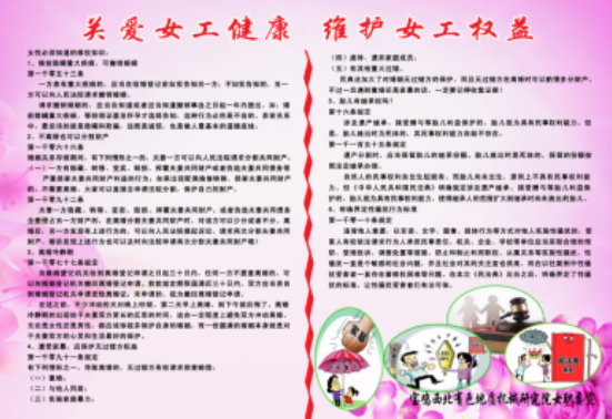 各单位女职委积极宣传《民法典》《促进工作场所性别平等指导手册(修订版)》、《陕西省实施女职工劳动保护特别规定》等女职工权益保护法律法规,通过广播平台、橱窗板报、张贴标语、网络平台等结合疫情防控进行普法宣传,推动普法活动深入基层一线、深入女职工中。