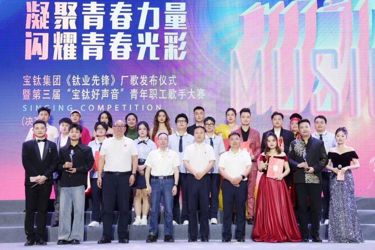 厂歌展演之后,第三届“宝钛好声音”青年职工歌手大赛正式开赛。此次青年职工歌手大赛由集团团委主办,经过一个多月的精心准备和选拔,15组选手从来自基层的48组选手中脱颖而出,于当晚同台竞技、一展歌喉。《九儿》《我站立的地方是中国》《飘向北方》《红旗飘飘》等不同风格的歌曲轮番唱响、精彩演绎,为观众们献上一场美妙的视听盛宴,赢得了现场阵阵掌声。最终,锻造厂王欣宇荣获冠军;板材厂吴俣槟、锻造厂赵瑞轩分获亚军;教培中心杨屹晨、板材厂陈泽玺、板材厂武琪迪分获季军。与会领导现场为获奖选手颁奖并合影留念。