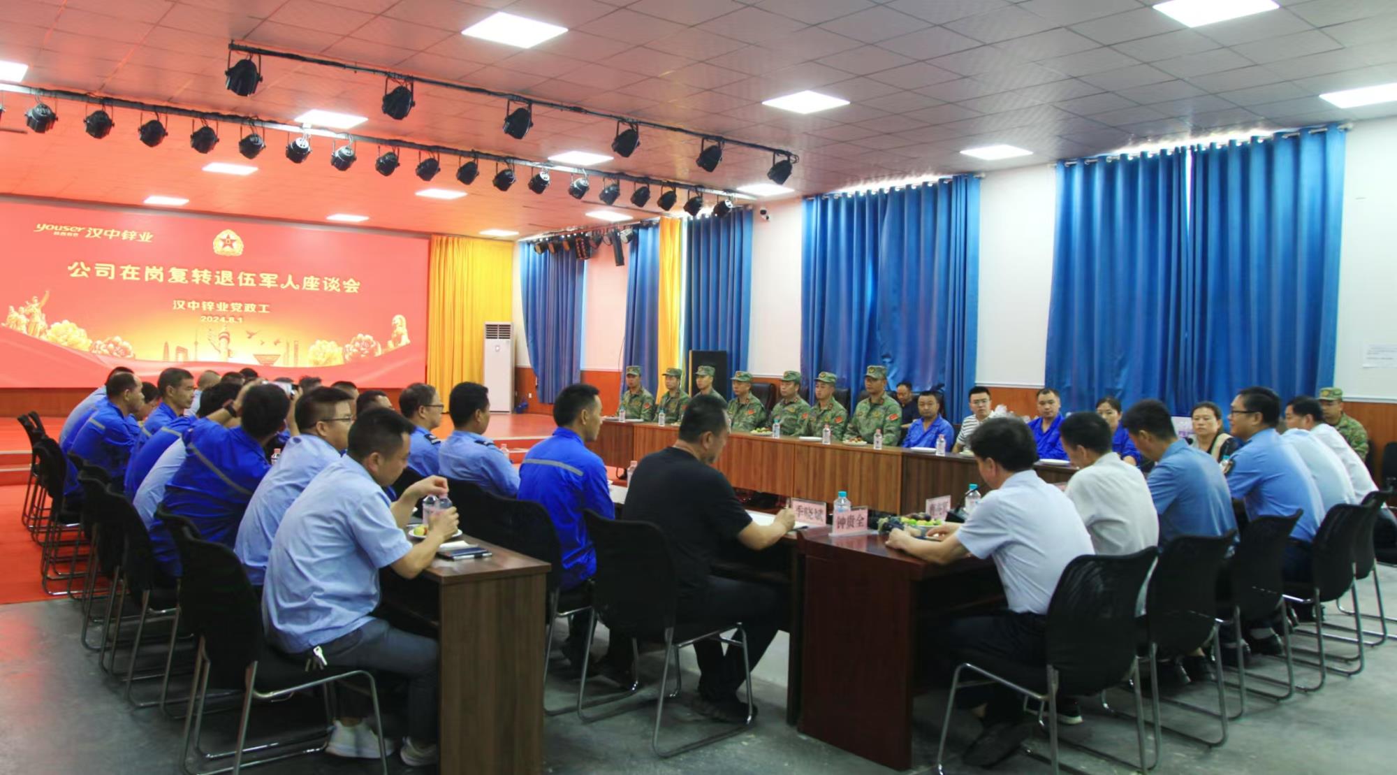 8月1日,汉中锌业公司在多功能厅召开在岗退伍军人座谈会。公司党委副书记、工会主席路延忠,勉县人武部部长曾海龙、退役军人事务办公室主任王卫中等参加座谈会。座谈会由群团工作部部长曹亮贤主持。