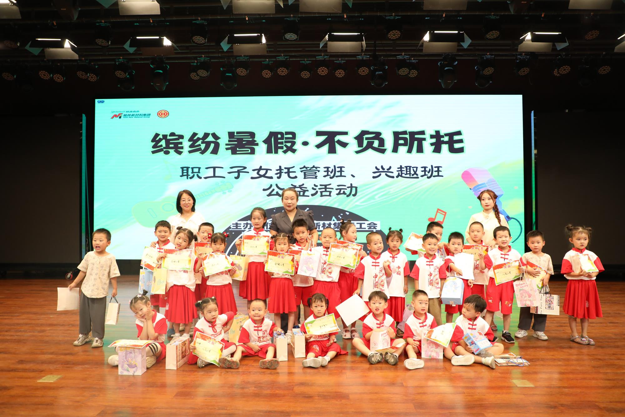 手势舞表演、成语接龙、舞蹈表演、手指算……舞台上,憨态可掬的孩子们轮番展示着一个月以来在暑期托育班的学习成果,赢得了家长们的阵阵掌声,随着表演的落幕,榆林新材料集团工会关爱职工子女系列活动圆满结束。