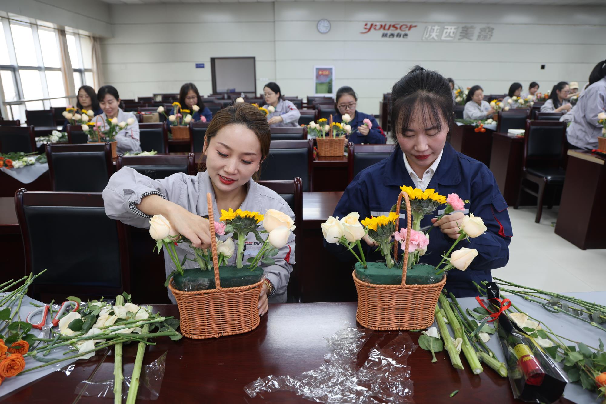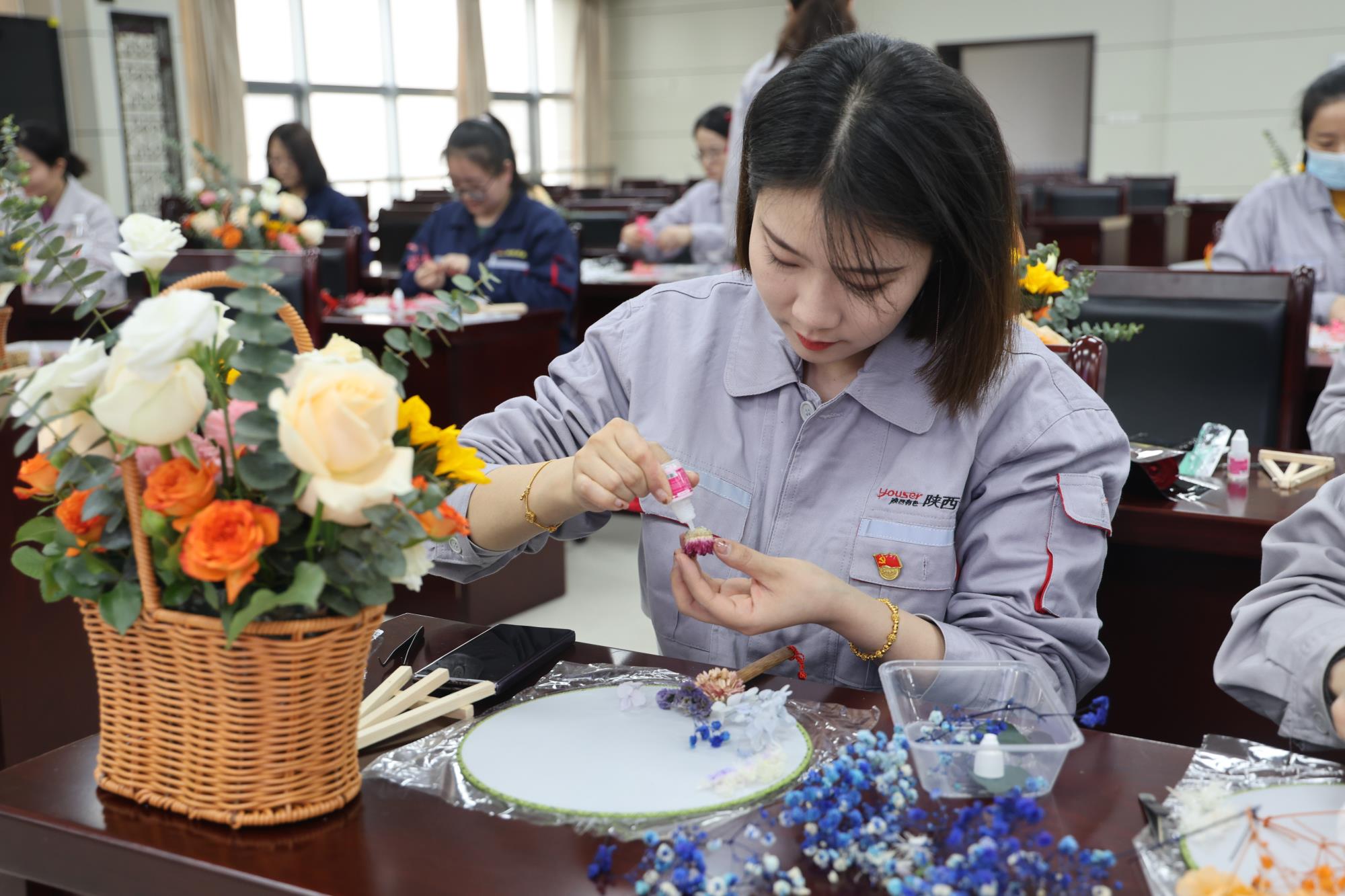 为庆祝第115个“三八”国际劳动妇女节,3月7日下午,陕西美鑫公司女工委开展“‘陕’耀巾帼志·建功谱新篇”主题系列活动之“插花拾趣 悦享生活”、“巧手生花,制扇‘至美’”团扇DIY活动,来自陕西美鑫各单位约60余名女职工参加活动。陕西美鑫公司党委副书记、工会主席杨亚科,工会副主席张晓进,党委宣传部副部长、女工委主任刘芳婧,工会办公室主任王庚出席活动。