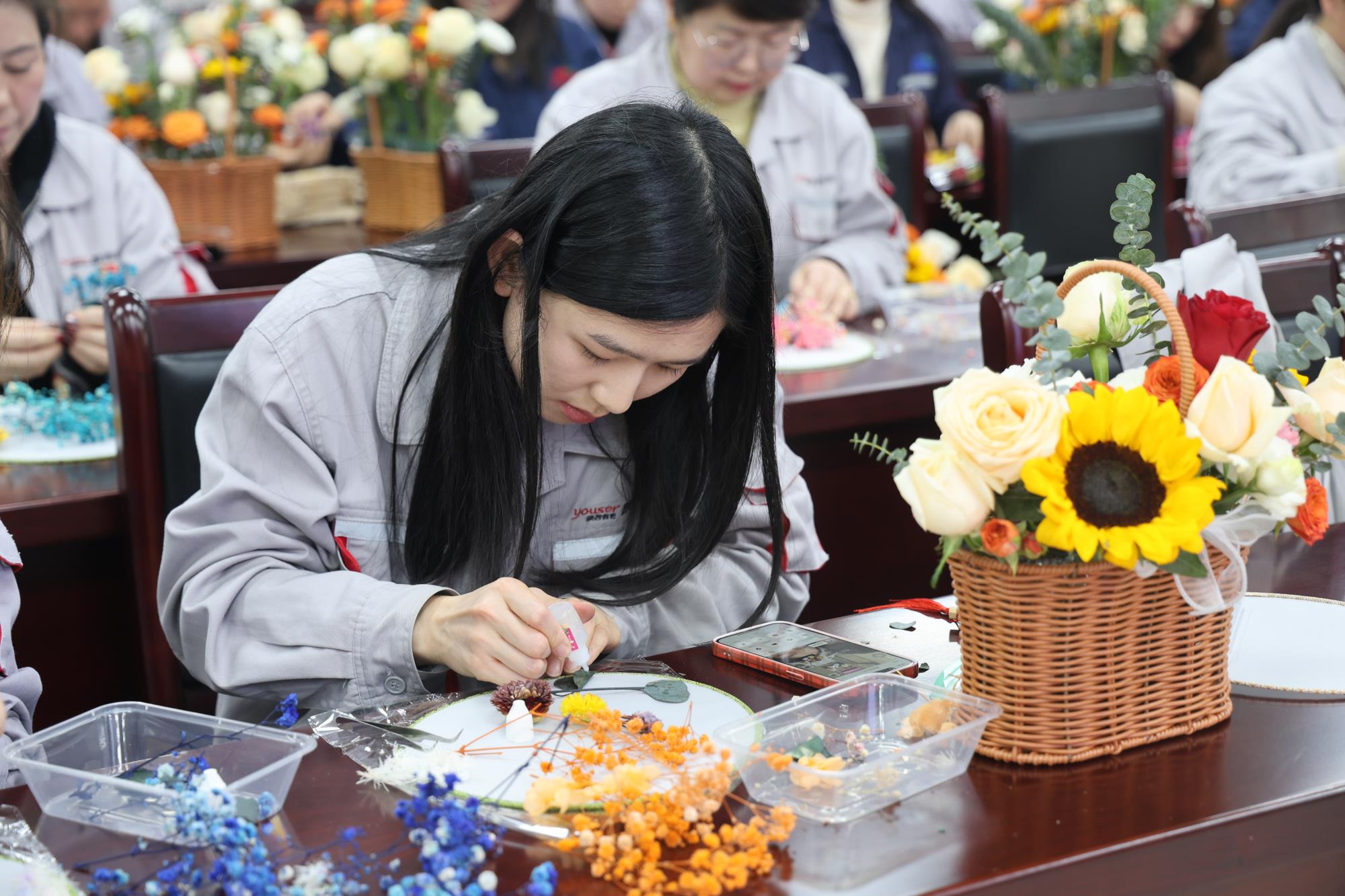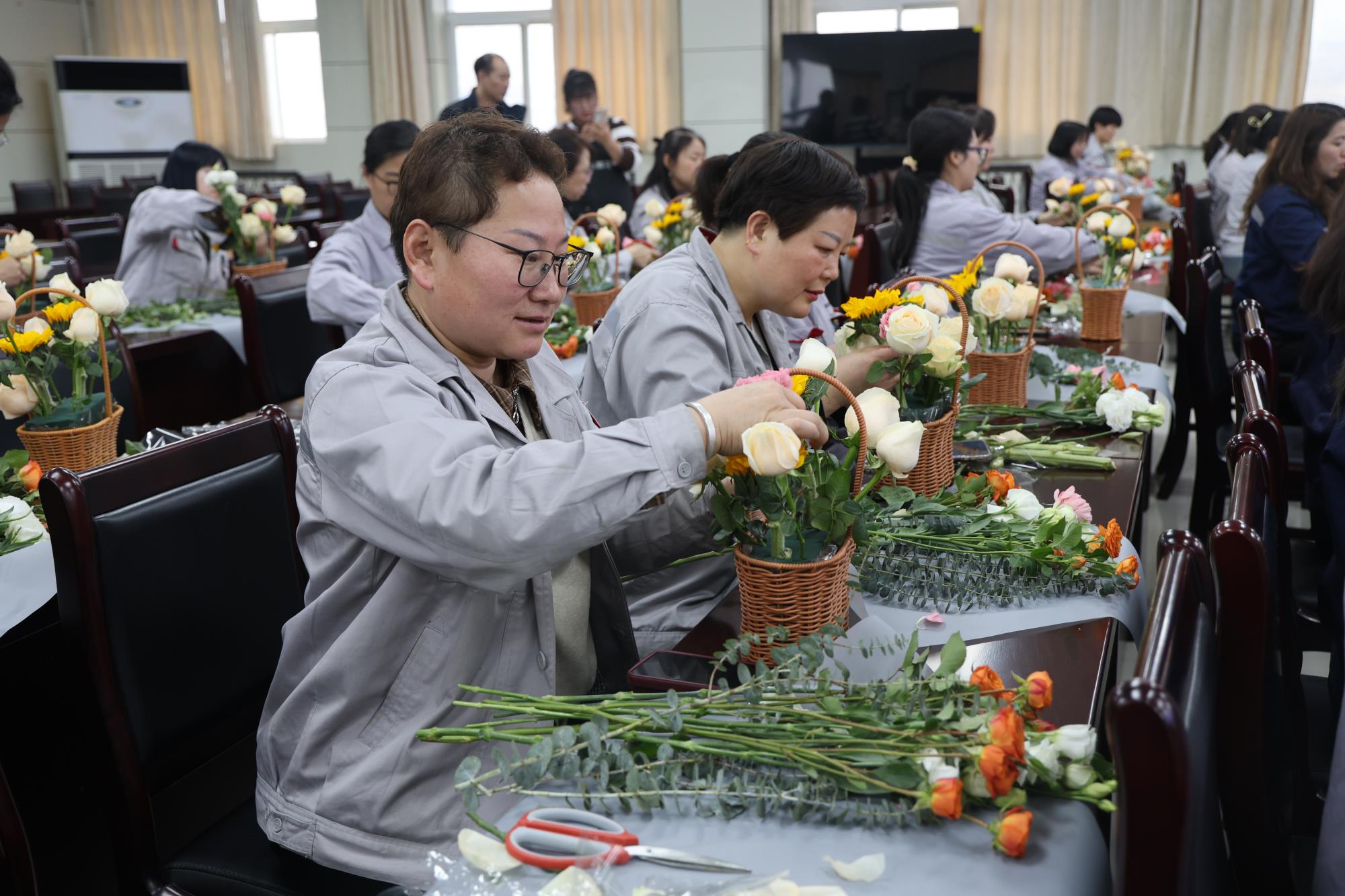 “插花拾趣 悦享生活”插花活动邀请专业花艺师现场为女工们讲解了插花的基本技巧和花语寓意,引导大家根据自己的喜好和审美,将一束束鲜花巧妙地搭配起来。香槟玫瑰的浪漫、向日葵的朝气、康乃馨的温馨……一朵朵鲜花在女工们的巧手下,仿佛被赋予了生命,变成了一件件独一无二的艺术品。大家一边插花,一边交流心得,现场欢声笑语不断,气氛热烈而融洽。