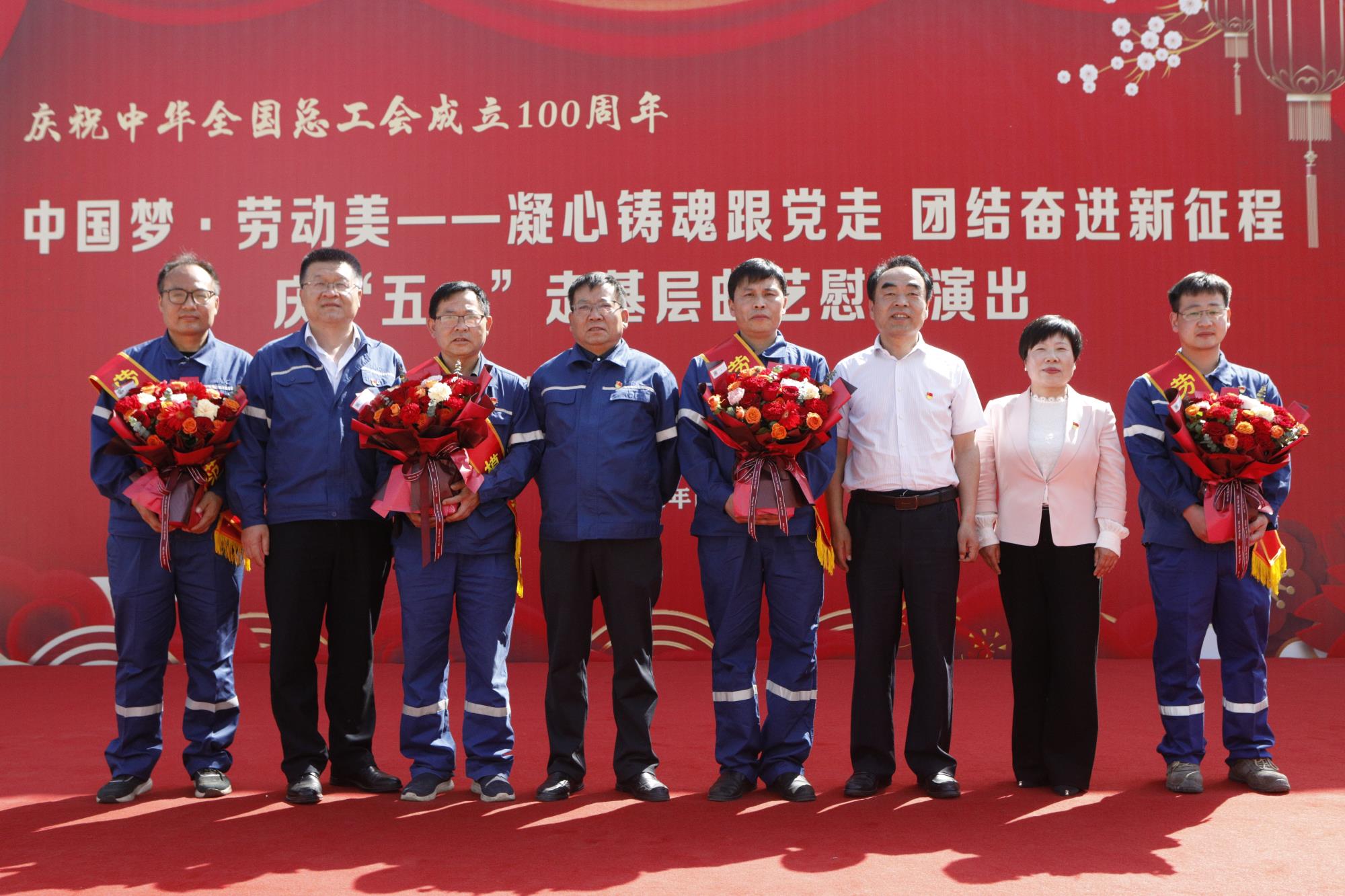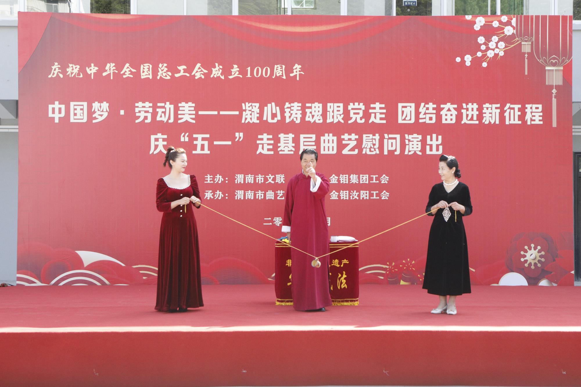 在“五一”国际劳动节来临之际,4月23至25日,由金钼集团工会联合渭南市文联主办,各相关单位工会和渭南市曲艺家协会承办的"中国梦·劳动美——凝心铸魂跟党走 团结奋进新征程"主题文艺演出走进五洲矿业、冶炼分公司和金钼汝阳生产一线。公司党委副书记张保生出席活动,为劳模、工匠及创客室团队领衔人送上鲜花,并向奋战在基层的广大劳动者致以崇高敬意。
