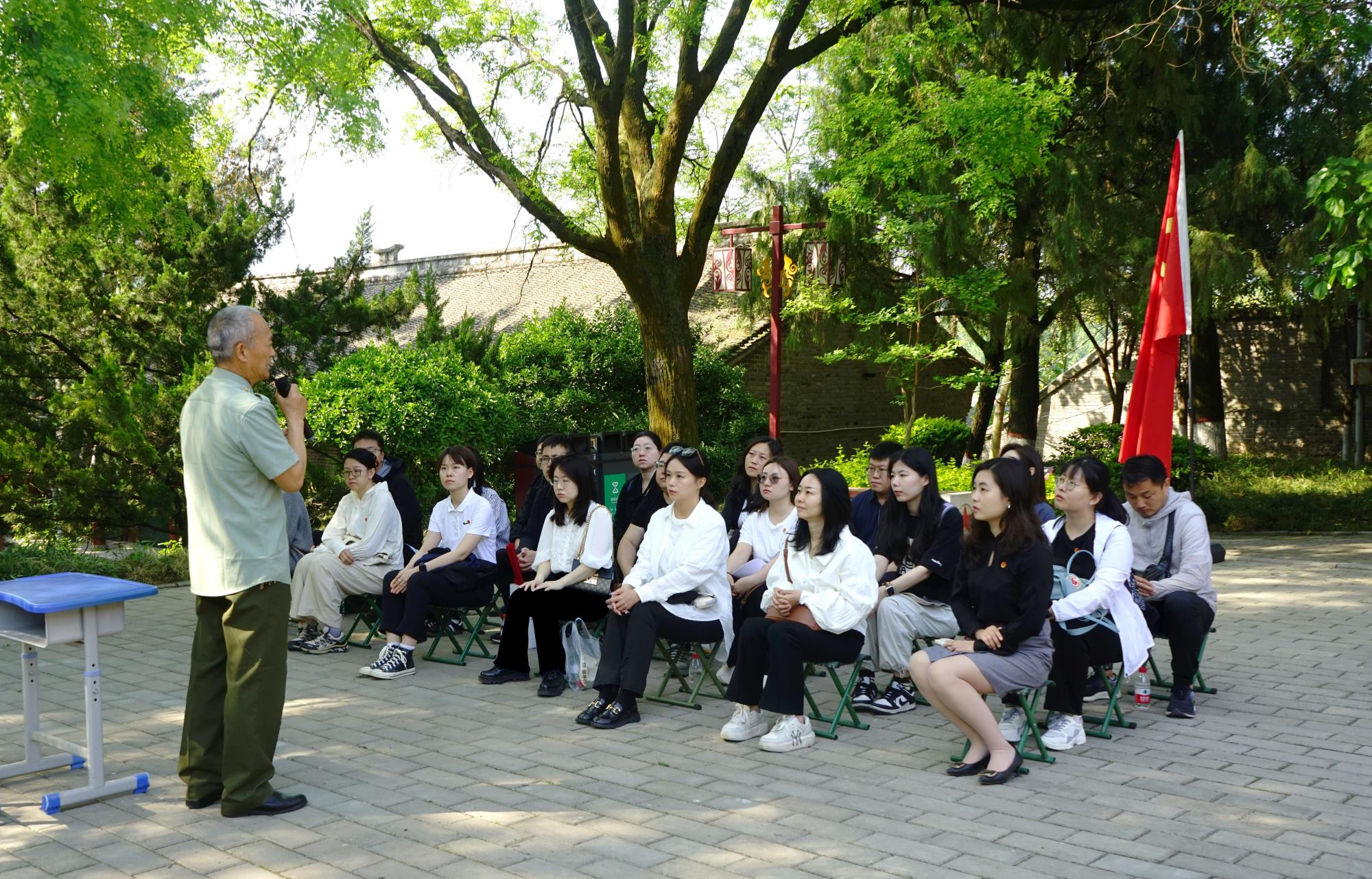 在起义旧址的大槐树下,参加过中越边境自卫反击战的老兵陈乾明老师为青年们授课,饱含感情的讲述将大家带回枪林弹雨的战场,带回硝烟四起的年代,也更让青年们深切体悟到,我们习以为常的和平盛世,是千千万万保家卫国的战士负重前行换来的,而青年的使命,正是不辜负牺牲、不辜负厚望,为中华民族的伟大复兴接续奋斗。