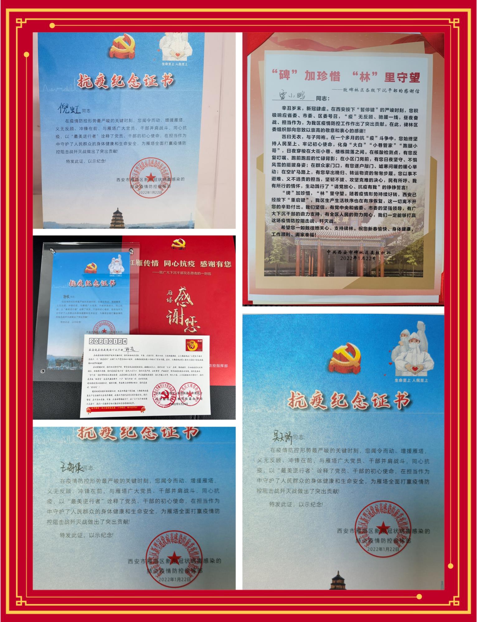 “经九南路社区疫情防控党员先锋岗”称号。此外,支部纪检委员刘新伟和公司纪委委员袁媛在接到命令的的第一时间就向所在社区进行报到,与社区人员积极配合,协助开展工作,圆满完成了疫情防控工作。