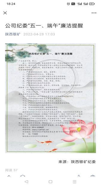 节前有部署。一是结合陕西银矿实际,及时印发《关于做好五一端午期间纠治“四风”工作的通知》,对节日期间纠治“四风”工作进行合理安排部署。二是通过公司官网、微信公众号、工作群等网络媒介,做好廉洁提醒宣传,畅通举报渠道,通报违反中央八项规定精神典型案例,筑牢党员干部作风防线,严防死守杜绝“节日腐败”。三是对公司资产财务部、党群工作部、办公室等重要部室负责人进行节前廉洁提醒,要求严格履行岗位职责,认真贯彻执行中央八项规定精神,严禁节假日期间违规收送礼品和宴请、违规使用公款吃喝旅游、公车私用等违规违纪行为的发生,时刻注意言行举止,树立良好的党员干部形象。严格落实疫情防控各项措施,切实做好疫情防控工作,全方位做好节日期间纠治"四风"工作。