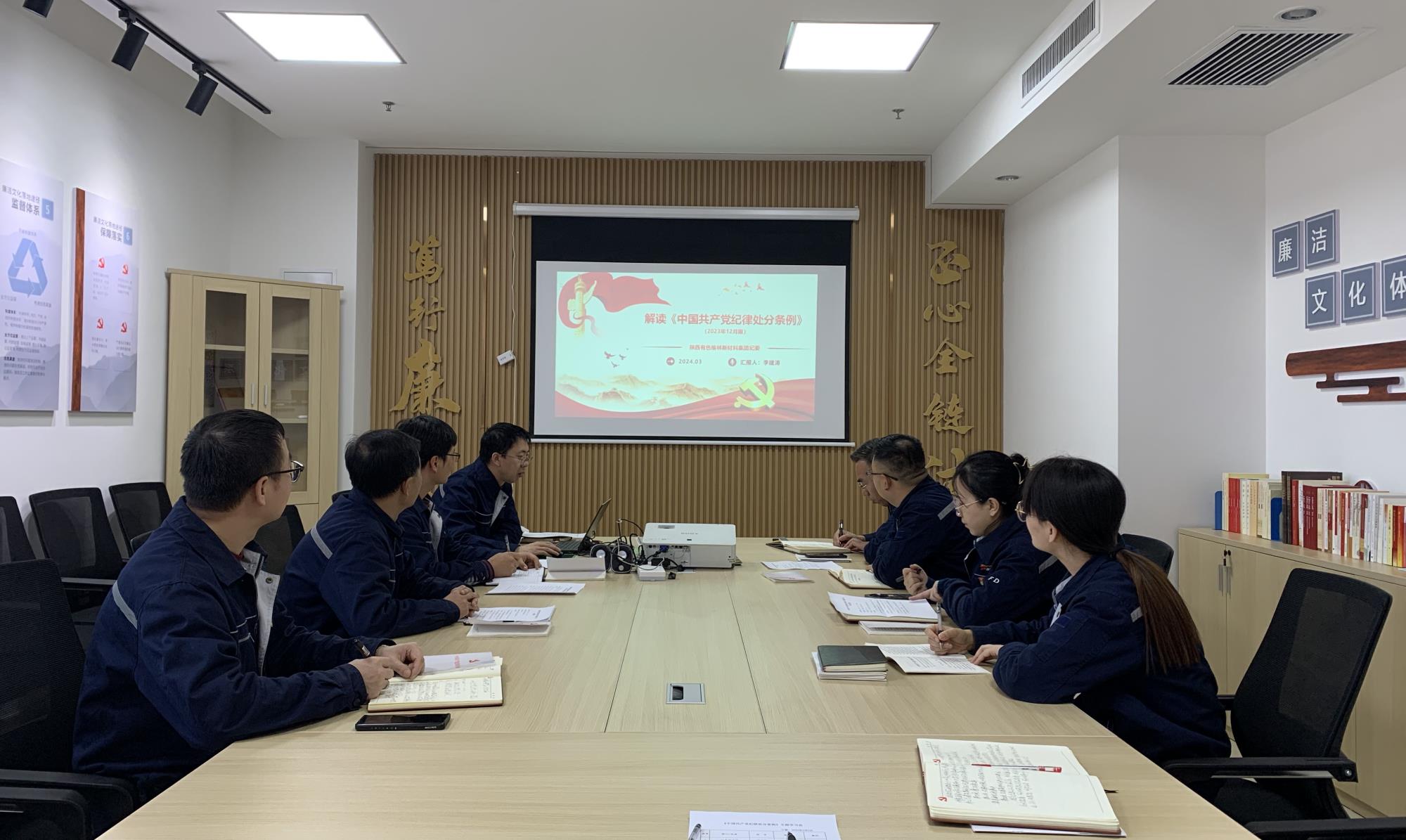 公司纪委召开专题学习会,对《条例》进行深入系统学习,把学习贯彻《条例》与深化拓展全国纪检监察干部队伍教育整顿成果结合起来,努力学深悟透,进一步提高依规依纪依法履职能力。各分子公司、各党支部通过党委中心组学习会、专题学习会,“三会一课”等多种形式,教育引导党员正确理解和把握《条例》精神实质,提升思想认识,保持清醒头脑,自觉接受党的纪律约束,营造风清气正的政治生态。